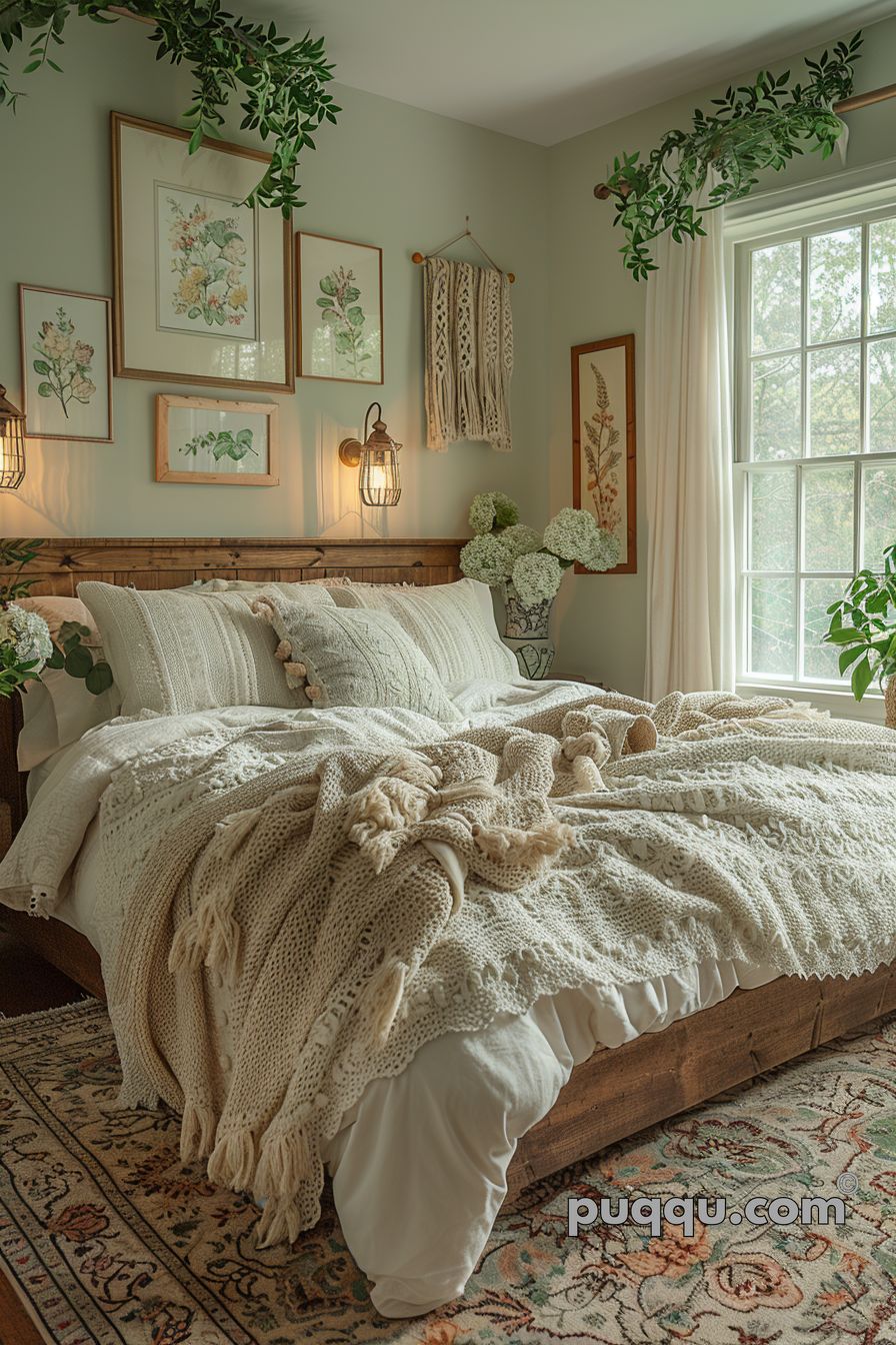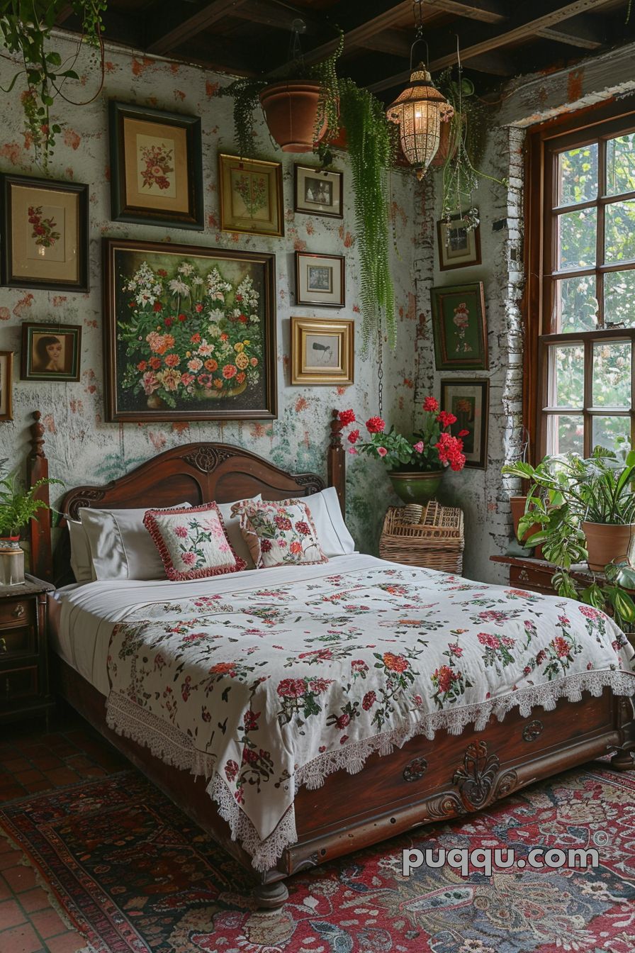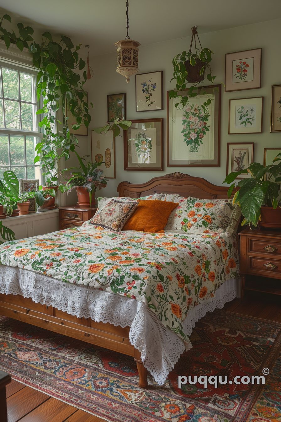 Florals & Greenery: Floral patterns are a staple for the GrandmaCore style, these can be brought in through bed linens or artwork in vintage frames. Houseplants add that feeling of bringing the outdoors inside to create a space that feels connected to nature.